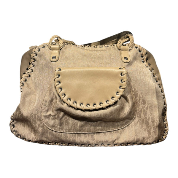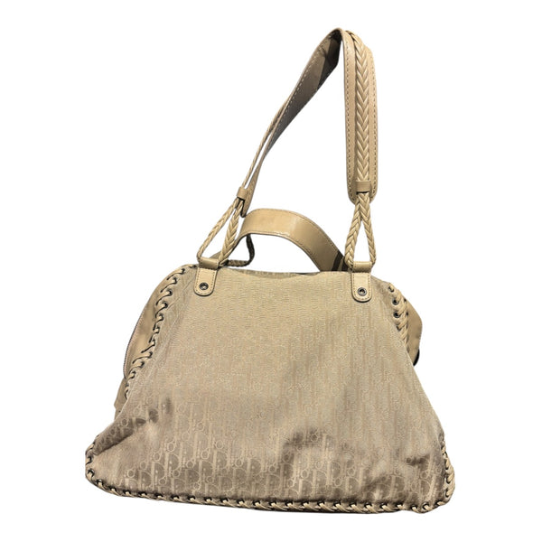 This Christian Dior satchel combines timeless elegance with practical versatility. Crafted from premium canvas and supple leather, it features the iconic Diorissimo monogram that signals refined taste. The structured silhouette accommodates daily essentials while maintaining a sophisticated profile. Dual handles offer comfortable carrying, and the neutral beige palette pairs effortlessly with any wardrobe. A coveted piece from Dior's heritage collection, this satchel delivers both investment-worthy craftsmanship and enduring style for the discerning collector.