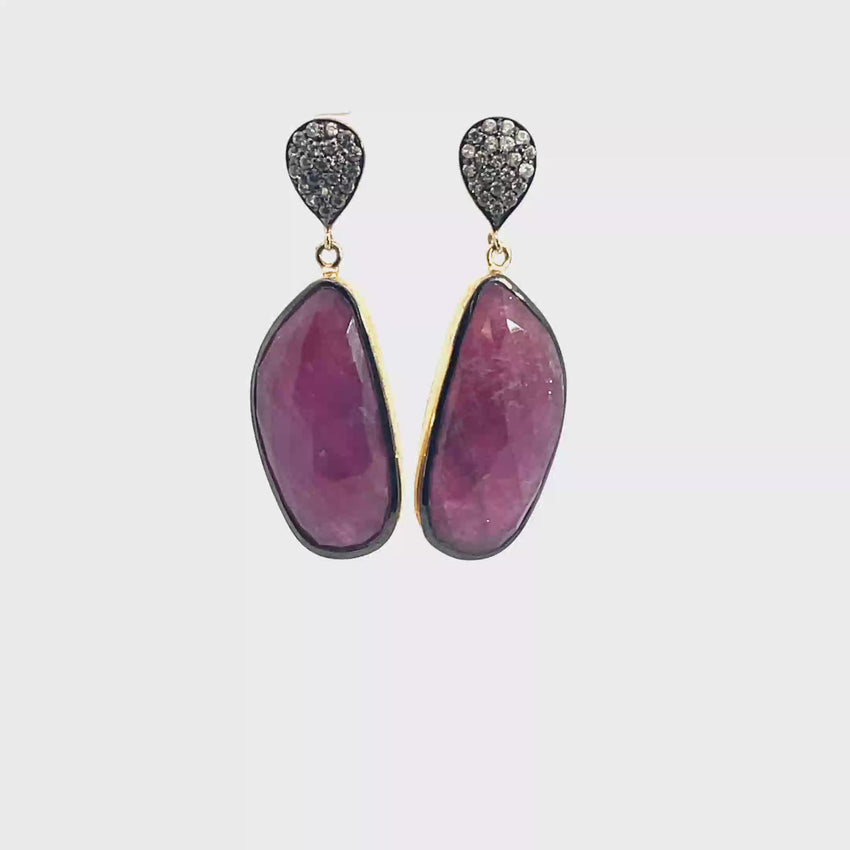 Ella Rae Ruby and Zircon Earrings set in 14K Yellow Gold Plate over Sterling Silver